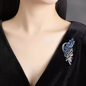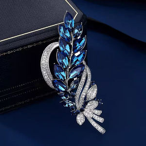新しい青い麦の穂のブローチの高級な女性の精巧なファッションの水晶の胸の花の小さい大衆の設計感のピンの洋服の装飾