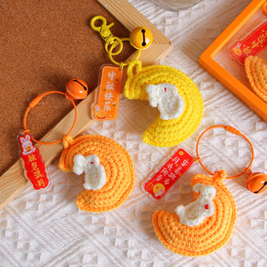 中秋の毛糸のキーホルダーの完成品の掛け物のネットの赤いフックは月のウサギの学生のかばんを編みます。