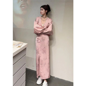 YT323317新中国風女装宋錦ファッション高級感ピンク酢酸ワンピーススカートスーツ2024