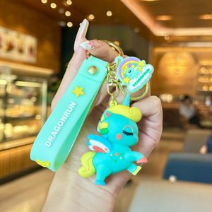 かわいい立体の柔らかいゴムの虹のユニコーンの公仔の鍵は漫画のカラフルな独角の馬のペンダントを掛けます。