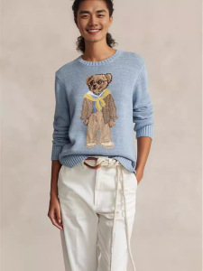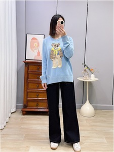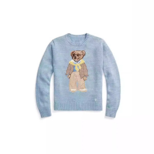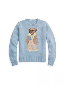 ポニー ~ 秋冬新作定番ポニー刺繍スカイブルーシンプル黄色スカーフベアーニットセーター