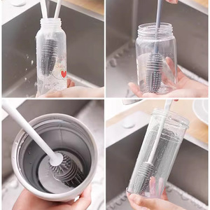 卸売りシリコン接着剤カップブラシ多機能長柄清潔ブラシキッチン汚れ洗浄カップ専用ブラシ哺乳瓶ブラシ