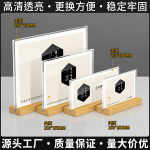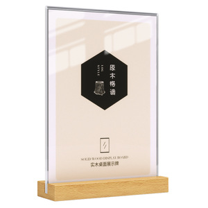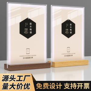 アクリル価格展示ブランド高級木製台座台カードミルクティー店デスクトップ立札両面透明価格表