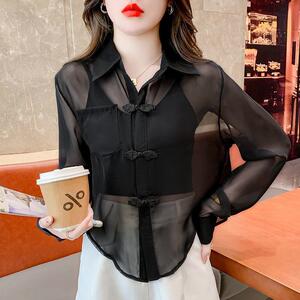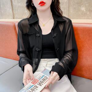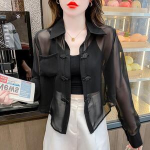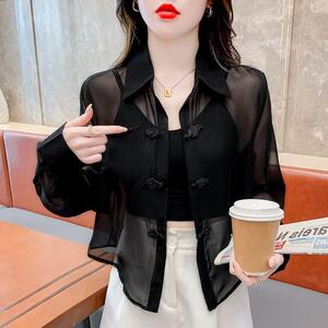 中国風の短いブラウスのストラップのスカートの外で女性の新しい中国式のマントの日焼け止めのシフォンのカーディガンの薄い紗の上着の夏