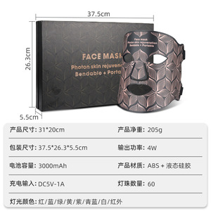 8色シリコンマスク器具 赤青光フェイシャルマスク 光子美容肌若返り大型ライト 家庭用顔面光スペクトルマスク