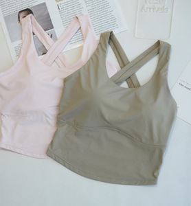 一体式胸パットヨガベスト女性スポーツランニング上着フィットネスブラジャー吸汗涼感クロス美背ブラウス