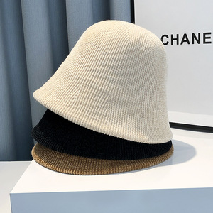 秋冬のクロスボーダーフィッシャーマンハット、日本風レディースファッション、多用途でトレンディ、小顔効果のあるニットバケットハット、高級感のある厚手