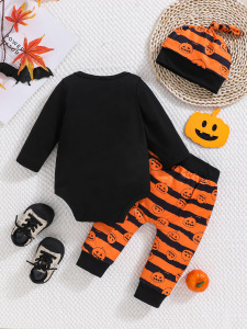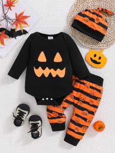 2025 春と夏の新しい外国貿易子供服ハロウィンベビー服漫画ゴーストフェイスプリント長袖スーツ