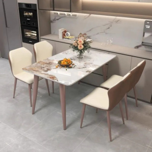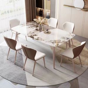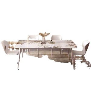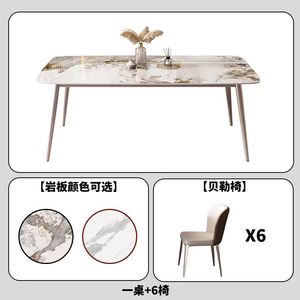高光軽豪華岩板食卓小戸型家庭用長方形ベレー椅子ネット赤イタリア風莫蘭紫食卓椅子