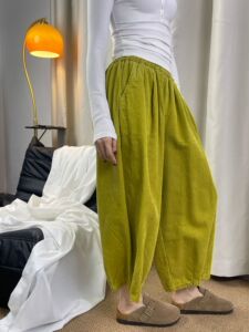 レトロで怠惰なコーデュロイ風船パンツ女性秋冬日系ゆるいシルエットカジュアルパンツがウエストを緩めている