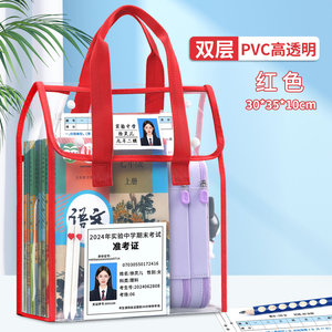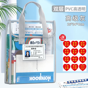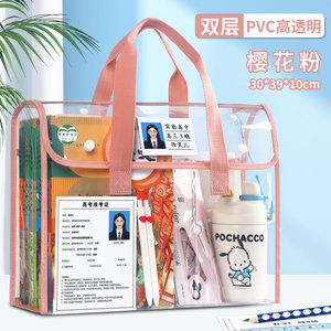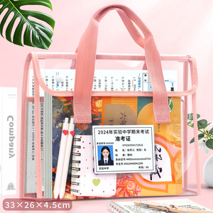 ジェリーファイルバッグ透明試験会場専用中考大容量シンプル二重ハンディ補習バッグ