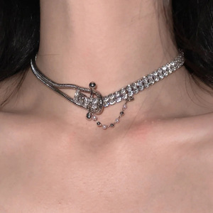 甘いクールなギャル風の軽い豪華なダイヤモンドの鎖の女性の気質のベルトのバックルのネックレスの小さい大衆の設計感のchokerの首の鎖