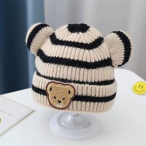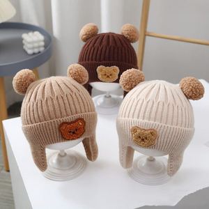 赤ちゃんの毛糸帽子がかわいいベアーの耳保護帽子供は冬に保温ニット帽韓国版乳幼児帽を厚くする