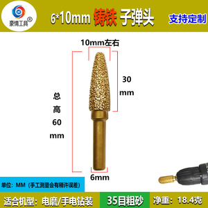 ダイヤモンド研削ヘッド鋳鉄専用ろう付け電気研削ヘッド粗砂砥石研削ヘッド円柱弾丸型金属研削