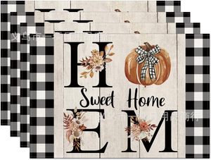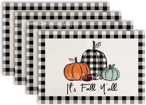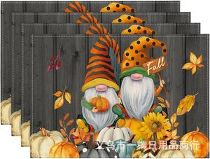 国境を越えたtemuが爆発した秋の収穫シーズンの感謝祭カボチャ亜麻プリントの食事マットレストランの断熱マットの家庭装飾