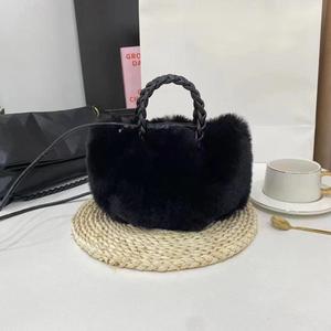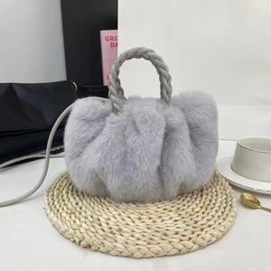 手持ちの毛羽立ちの新しいカボチャのカバンのしわの雲のカバンの大衆の高級感の斜めのショルダーバッグはウサギの毛のぬいぐるみのカバンをまねます。