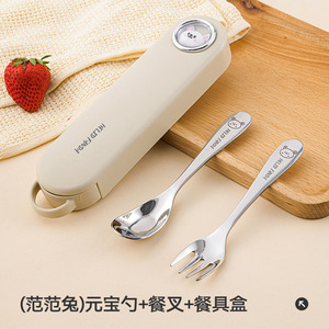 316L元宝スプーン子供の食事スプーン携帯セット家庭用赤ちゃんが食事をしてスープを飲んで、スプーンを食べさせます。
