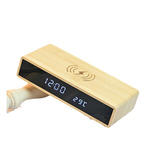国境を越えた携帯電話ワイヤレス充電木製時計LEDディスプレイデジタル時計竹製電子時計ベッドサイド多機能時計