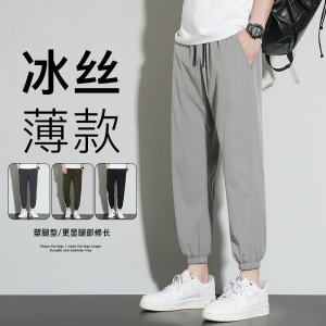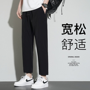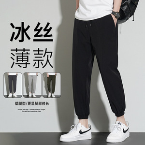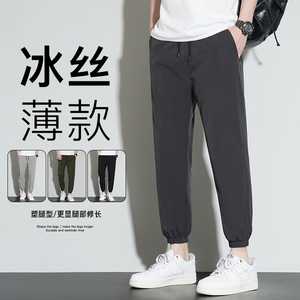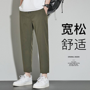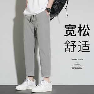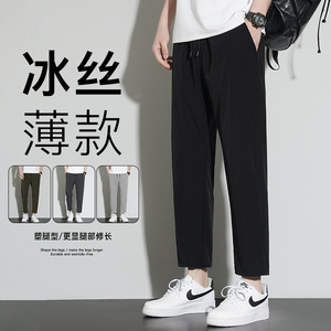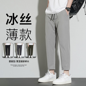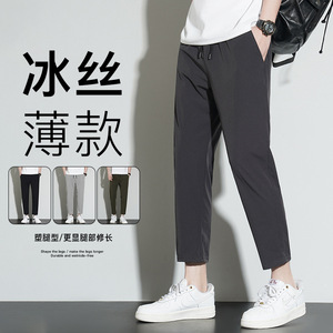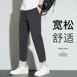新商品のクロスボーダーの大きいサイズのズボンの夏の男性のカジュアルなズボンの薄い弾力性の9分のズボンの氷の糸のまっすぐな筒の9分の男性のズボン