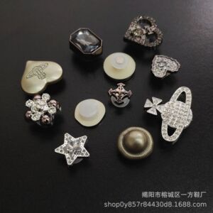 穴の靴は靴の花の潮流の立体の水晶のドリルを飾って卸売りします高級感の靴のボタンは靴の表面の装飾の部品を取り外します。