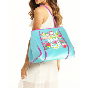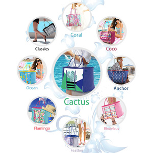 現物は潜水材料のビーチバッグのフラミンゴのハンドバッグの女性のファッションの大容量のハンドバッグを代行します。