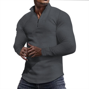 2025年欧米風春秋格子柄スウェットシャツ メンズ スタンドカラー ハーフジップ 長袖スウェットシャツ メンズトップス