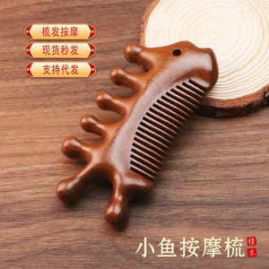 小魚マッサージ櫛頭部経絡檀木櫛女子専用排骨櫛多機能頭部マッサージ櫛