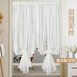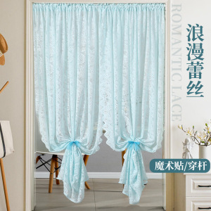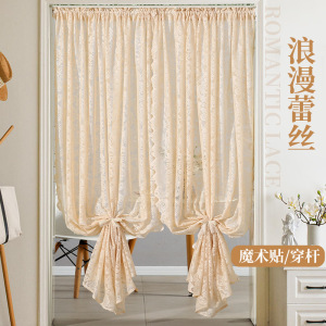 フレンチレースのカーテンの寝室には窓のカーテンがあります。