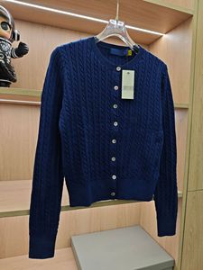 2025春秋レトロツイスト編み馬刺繍ラウンドネックニットカーディガンシンプル気質コットン長袖セーター