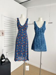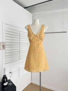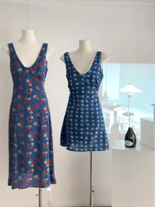 「Xinxing」ミロス旅行記 V ネックオーガンジースプライシングウエスト花柄ドレス女性の夏のノースリーブベストドレス