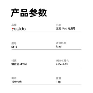 イエシド誤操作防止静電容量式ペン、絵画用、越境配送対応、アルミニウム合金製タッチスクリーンペン、iPad対応手書きペン