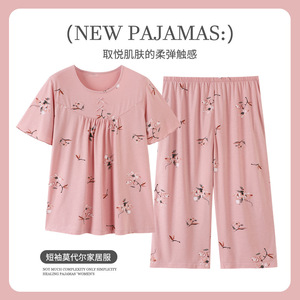 ママパジャマ レディース 夏 モーダル 半袖 カプリパンツ 薄手 中高年 プラスサイズ ゆったり ホームウェア セット