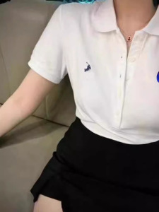 R1現物ラフ小馬標刺繍通気収腰修身五粒ボタン折り襟半袖tシャツpoloシャツ女