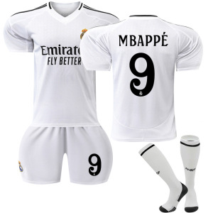 2425皇馬ホームサッカー服セット正確版9号ムバッペユニフォーム靴下付き5ベリンガム工場