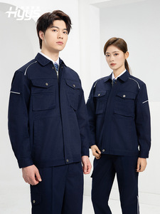 海源春秋作業服セット男性機修理工場労働保険服印字ロゴ反射研磨工事現場工装