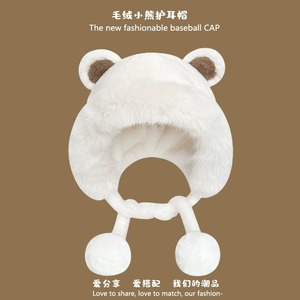 帽子女性の秋と冬の新しいかわいいクマぬいぐるみ屋外サイクリングプラスベルベット肥厚暖かい耳保護帽子寒さを防ぐ卸売
