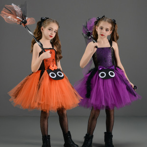 ハロウィーン子供cos服蜘蛛の精魔女コスプレ服八足蜘蛛の女の子ワンピースtuuスカート