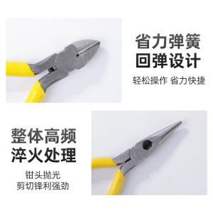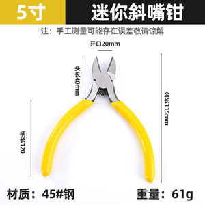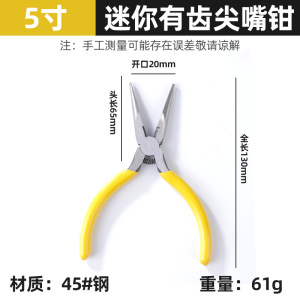 5インチ尖口鉗子DIY黄色小鉗子アクセサリーカットミニ鉗子歯付き刃付き手作りミニ鉗子