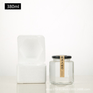 六角380mlボトル+キャップ+フォームボックス+カートン;透明