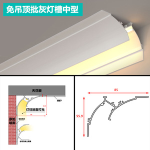 明装無吊り天井洗浄壁灯アルミ合金灯槽反射灯槽認可灰腰線石膏線頂角線灯帯