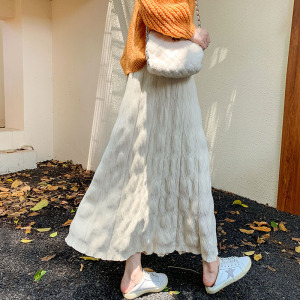 背の高い足首までのロングニットの半身のロングスカートの女性の秋冬a字の木目感の百のスカートの垂れ下がった感じの大きいスカート