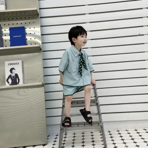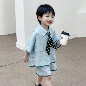 男児2024夏の韓国版児童学院風シャツセット