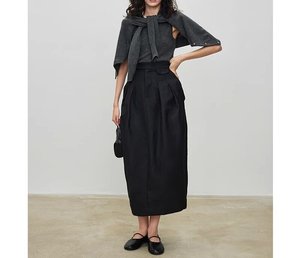 スポット新作春秋プリーツつぼみハイウエスト足首丈ロングスーツスカート女性用
