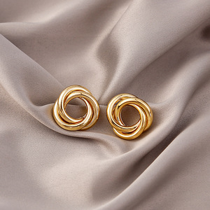 欧米のクロスボーダーの幾何学のねじれの麻の花のピアスの艶消しの質感の透かし彫りのイヤリングのファッションのアイデアの美しい耳飾り