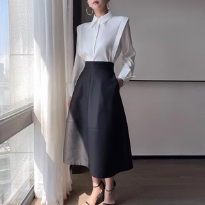 现货秋季新款黑色复古赫本风简约A字高腰大摆裙伞裙半身长裙