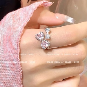 甘くて気絶しましたピンクのダイヤモンドの蝶結びの指輪の女性の軽豪華な気質の食べ物の指戒の大衆の設計の高級感のファッションのペアリング