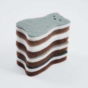 猫は食器を洗って油汚れスポンジを4枚入れてミニかわいい子猫百洁布でスポンジを清潔にする