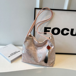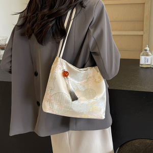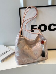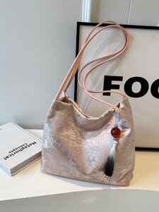 中国風大容量バッグ レディース 夏 2025年新作 繊細な刺繍入り カジュアル 通勤 トートバッグ 新中式 ショルダーバッグ