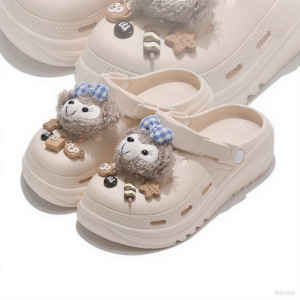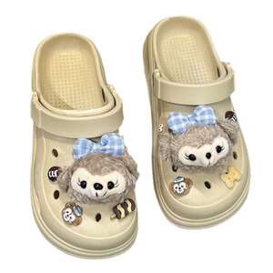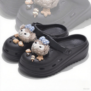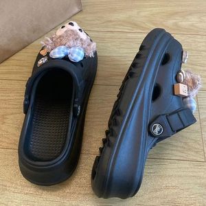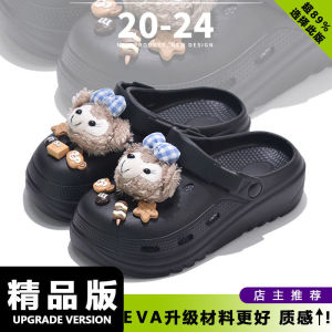 かわいいぬいぐるみクマの下駄女性用 2025 夏の新しいアウターウェア厚底増加つま先ツーウェアサンダルとスリッパトレンディ