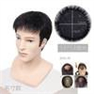 かつらの男性の毛の寸の短い髪の頭の上で髪を補充します。